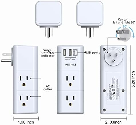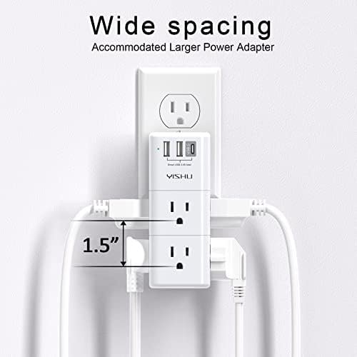【Surge Protector Outlets】: The multi plug outlet provide surge protector against electrical spikes. Three complementary Surge Protection Circuits, TVS(transient voltage suppressor) MOV(metal oxide varistor) GDT(gas discharge tube), with response speed less than 1Ns, and minimum energy-absorbing capacity of 900 Joules, its response time is much shorter than the traditional MOV surge protector circuit, It truly provides great protection of your precious plugged-in devices.