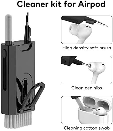 Cleaning kit for Airpods and iPhone : The metal tip is used to clean crevice stains, and the high-density brush for earbuds and phone mesh sound holes, the flocking sponge is used to clean the earbuds charging case hole.