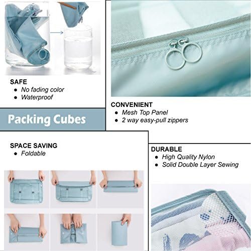 【High Quality Travel Luggage Organizers】: Made of high-quality waterproof NYLON. Mesh top panel for easy identification of contents and well separate different clothes as you like. Strong two sides zippers and double stitched layers make Adwaita Packing Cubes become your most valued and reliable travel buddy.