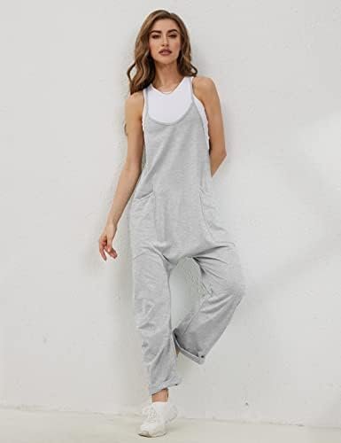 Women's Loose V Neck Sleeveless Jumpsuits Adjustable Straps Harem Long Pants Overalls with Pockets