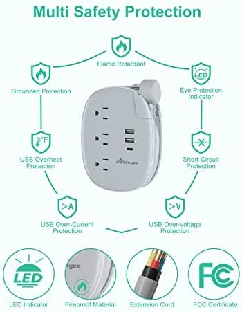 Reliable Safety Guaranteed- This travel power strip with USB is certified by FCC , and made of Fire-resistant PC shell . Built-in short-circuit, over-voltage and over-current protection can ensure the safety.Our friendly and reliable customer service will respond to you within 24 hours. You can purchase with confidence, with our 30-day return and 18-month replacement.
