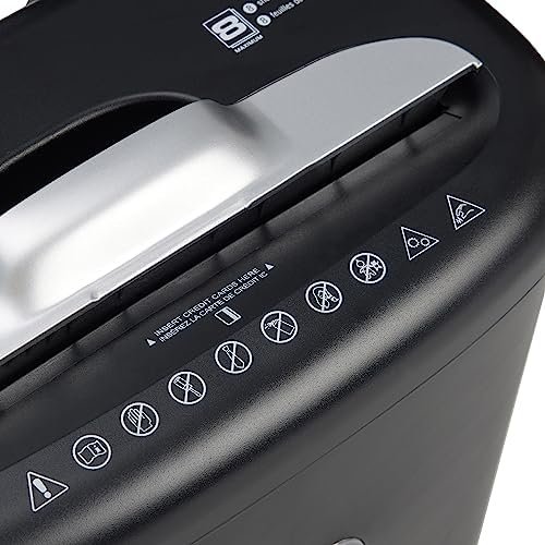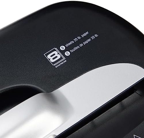 Shreds up to 8 sheets of 20-pound bond paper at a time, including staples and small paper clips; 8.7-inch-wide entry