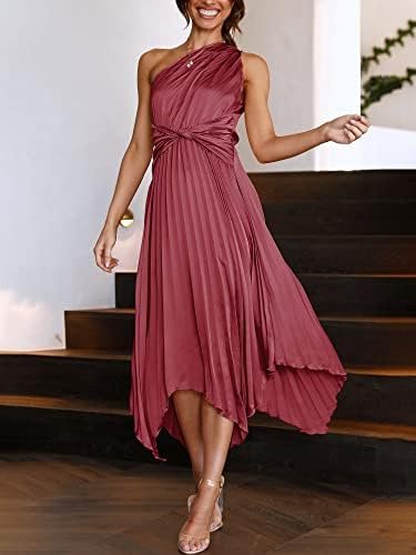 Stylish Design – One Shoulder Midi Dress /Sleeveless Dress For Women/Asymmetrical Hem Dress/Twist Waist Front Dresses/Fitted Dress /Solid Color Dresses/Midi Length Dress/Satin Dress For Women/Club Party Dress For Women/Pleated Cocktail Dress/Evening Dress For Women/Elegant Wedding Guest Dress