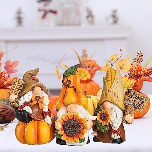 FALL DECOR: Use these cute resin dwarfs to decorate home, kitchen, room, office, farmhouse, coffee bar, shelves, fireplace, and wherever you want them. They are great autumn decorations and a great choice for Thanksgiving gifts