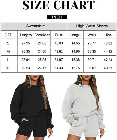 Design: Athletic workout 2 piece outfits, includes long sleeve crewneck sweatshirt tops and high waist matching shorts, drawstring waist, solid color,casual & lounge style, drop shoulder, loose fit, wide leg, it’s thick and really soft inside, standard size, a sweatsuit that goes with everything.