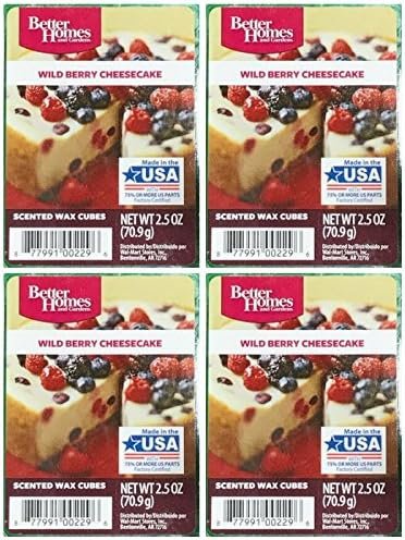 Better Homes & Gardens 2.5 oz Wild Berry Cheesecake Scented Wax Melt features the taste-tempting allure of ripe blueberry, juicy blackberry, and sweet meadow strawberry swirled in a rich glaze of white sugar and zesty lemon over creamy New York style cheesecake.& Combine your favorite Better Homes & Gardens wax melt fragrances to create custom blends. Better Homes & Gardens 2.5 oz Wild Berry Cheesecake Scented Wax Melts are for use in an electric wax warmer and release a soothing highly fragrant scent into the air immediately upon melting. They are ideal for spreading a relaxing scent and welcoming atmosphere throughout your home.