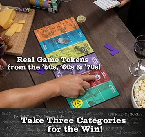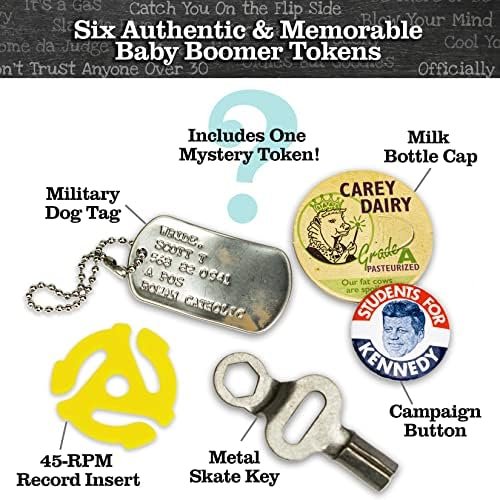 DELUXE GAME FEATURES IN A COLLECTOR’S BOX: Classic pop culture trivia in a one-of-a-kind keepsake box, BOOM AGAIN pays homage to the unique experiences from the ‘50s, ‘60s & ‘70s. The BOOM AGAIN Game’s upscale and authentic details include real Boomer era game pieces like a 45-RPM record insert, skate key, a Vietnam-era dog tag and a card magnifier for easy reading. When you’re finished with the fun, pack it away in the organizer tray.