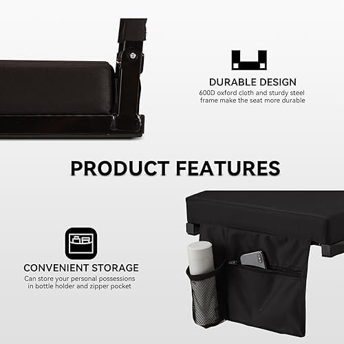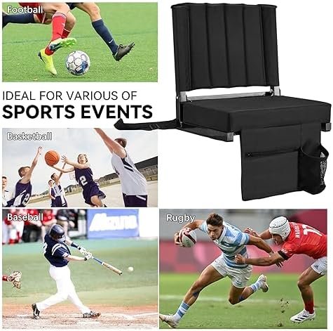 【Soft & Comfortable】This bleacher seat is desinged with the 4-inch thickness foam cushion and padded foam back support that can make you soft and comfortable. And this bleacher seat is constructed with durable 600D oxford cloth and sturdy steel frame,which can support up to 350Lbs.