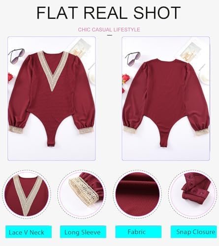 Features:Women’s Basic Bodysuit Tops boast a variety of features that make them stand out. The Lace V Neck a trendy touch to your outfit, and the Puff Long Sleeves provide coverage for a modest yet stylish look.