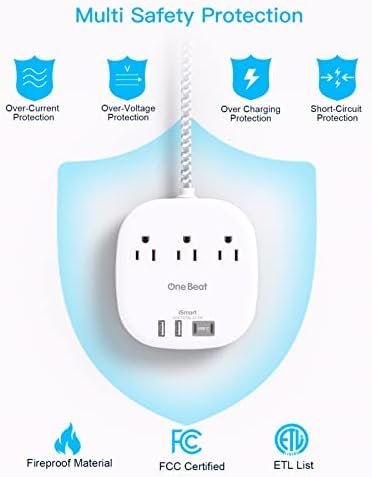 【Multiple Safety Protection & After Service】 – Our power strip are certified by ETL and FCC, high-quality components, 1382℉ fireproof, the power strip can prevent your electric devices from over-current/over-charge/short circuit/over-heated. (One Beat provides, 12-month free worry. 24h customer service.)