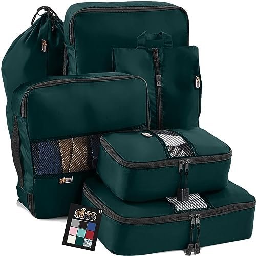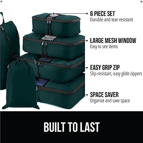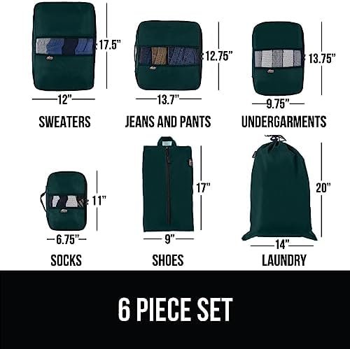 6 PIECE SET: this 6 piece set features cubes for heavy items like jackets and sweaters, but also cubes for smaller lightweight items like shirts and undergarments; a laundry bag and shoe bag are also included to keep dirty items away from the clean