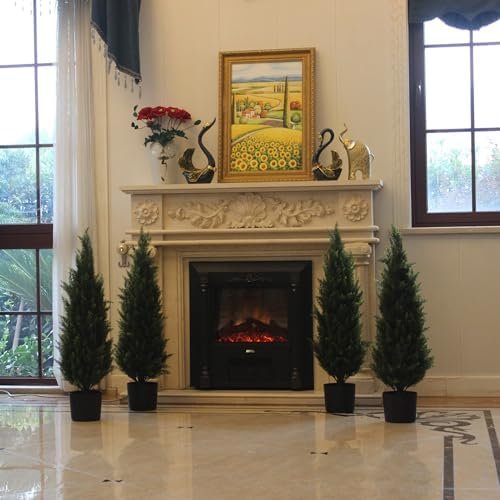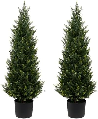 【Product Size】 This artificial cedar potted plant is 35 inches high and 12 inches wide. The size is calculated from the bottom of the flowerpot to the top leaf. The width is calculated from the leftmost leaf to the rightmost leaf. It is normal that there is an error of about one inch in manual measurement. If you mind, please discretely to purchase. The size of the flowerpot is 5 inches high and 5.9 inches wide black plastic flowerpot.