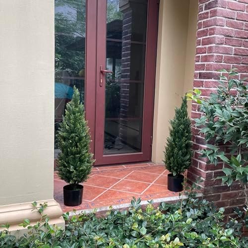 【Versatile Design】 Place the artificial plants in a corner of your living room for a natural accent, or use them to frame your front door for a welcoming entrance. Set topiary trees either side of your front door or garage; keep your home, garden, back yard, entryway, farmhouse, office, reception area or business looking crisp and sharp. Also making a housewarming gift as well.