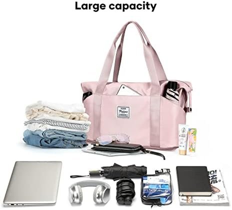 【Dry Wet Separated Tote Gym Bag】High-density waterproof wet pocket in the main compartment,which can help you to separate dry items and wet items,if you have wet clothes or towel,you can put it in this crossbody bag.