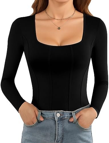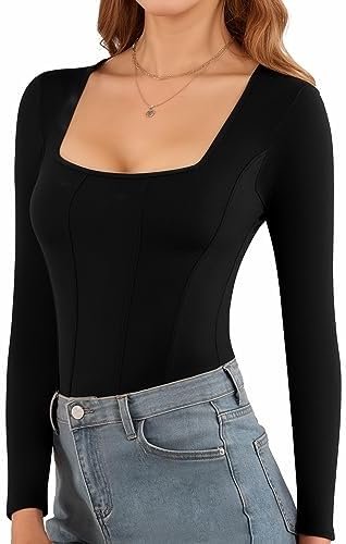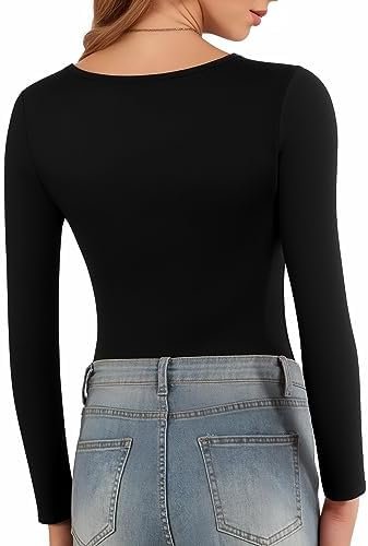 NO SEE-THROUGH: Our long-sleeve body suits for womens is a thickened fabric, providing you with complete confidence to wear it without worrying about any see-through issues.