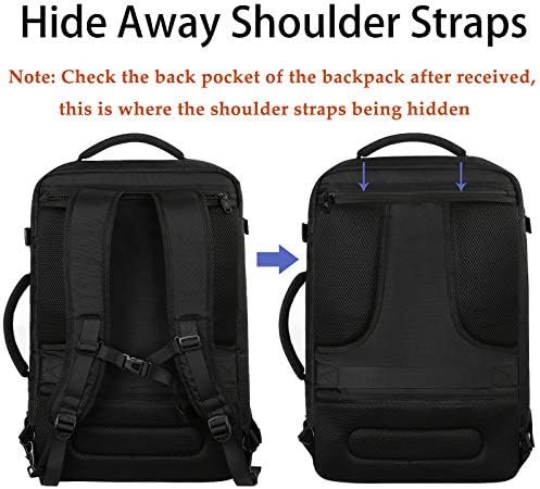 CONVERTIBLE DESIGN: The carry on backpack is designed with hideaway padded shoulder straps which can be easily stored away in zippered back panel, transforming this vacation backpack from carry-on duffel to briefcase style and provide you a more flexible carrying experience. A luggage strap on the back is designed to fit on luggage/suitcase, for easier carry on international travel or cruise. A great gifts for people who travel