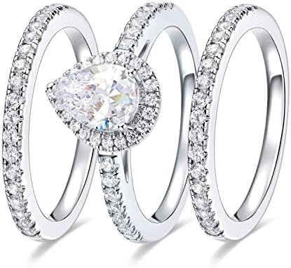 MDFUN Three-in-One Oval Halo Wedding