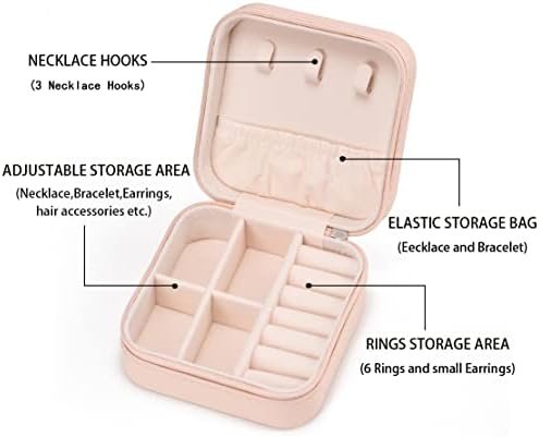 3. Samll, Cute and Multi-function — This mini jewelry case with 3 Necklace hooks, 1 elastic pocket, 3 removable compartments and 6 slot rolls Earring compartments to separate and protect your jewelries.