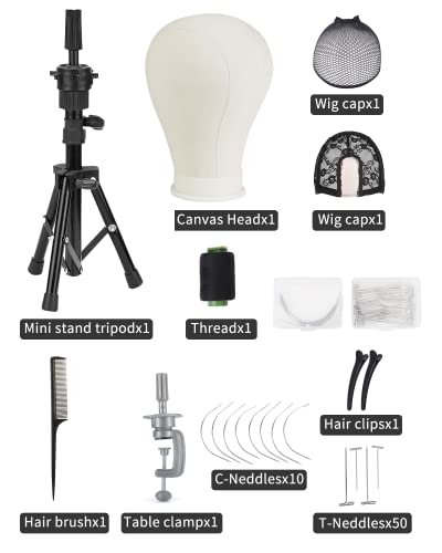 😀【About the Accessories】Pack included canvas wig head,table stand tripod and clamp,wig caps,pins set,hair brush and clips.Fully functional, there are all the accessories you need to practice making wigs.