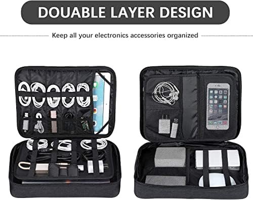 THICKEN AND WATERPROOF: The Thicken Electronics Organizer bag will absorb shocks and impacts, and the durable waterproof nylon surface protects your electronic accessories against spills, rains, dust, sractches.