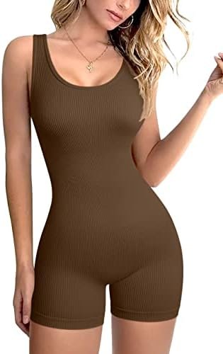 [Main Fabric] – This ribbed rompers made with soft fabric.High elasticity, Comfortable, Breathable,The 4-way stretch to promote both compression and butt lifting, provide support to the upper leg muscles and reduce muscle vibrations.