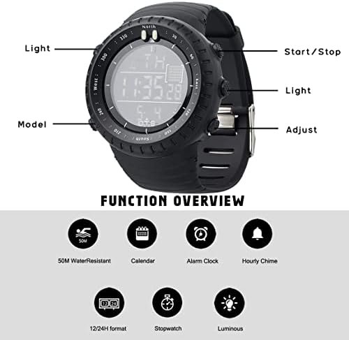 Digital watch: Fashionable sporty dial design, military style outlook. Big numbers display with light and large dial, show time clear even in the dark. Use import EL Lamp, press “LIGHT” button to see the time clearly in the light, easy to read