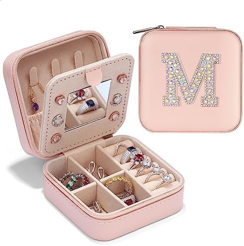 TRAVEL ESSENTIALS:Perfect protection and storage case of your jewelry, includes necklaces, bracelets, earrings, rings. Your best jewelry assistant in a journey. The letter jewelry case with mirror also shows your unique taste and charming.
