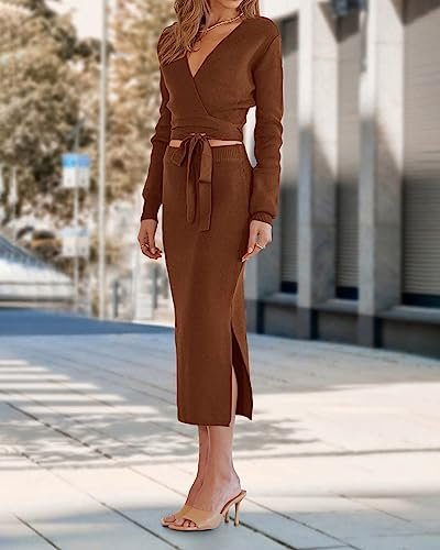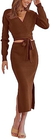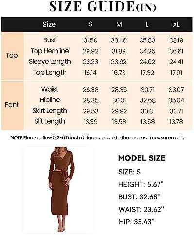Tips: S=US 4-6, M=US 8-10, L=US 12-14, XL=US 16 Feature: Women Casual Fall Winter Sweater Outfits 2023 / Long Sleeve Tops For Women / Sexy Front And Back V Neck Blouses For Women / Backless Pullover For Women / Wrap Crop Sweater Tops With Belt / Two Side Slit Skirts For Women / Bodycon Dress For Women / Ribbed Knitted Sweater Sets / Midi Length Sweater Dress For Women / Safety Button At Bust / Elastic Waist Midi Skirt / Solid Color Sweater Dress Sets / Suit For Spring Fall Winter