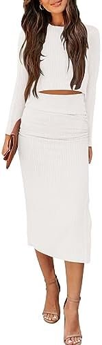 SIZE GUIDE: S=US 4-6, M=US 8-10, L=US 12-14, XL=US 16. Fall Two Piece Outfits For Women Made Of Super Soft And Stretchy Ribbed Knit Fabric, Offering You Excellent Wearing Experience. Crop Tops For Women And Midi Skirt Feel Smooth To Touch And Allow For Easy Movement