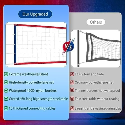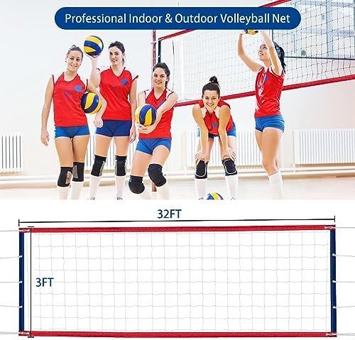 Upgraded Professional Volleyball Net: Made from durable and high-quality materials ensure long-lasting performance and resistance to wear and tear. Net size is 32 L x 3 W feet, square mesh net size is 4 inches, great indoor volleyball net and outdoor volleyball net for backyard, beach, inground pools, and above ground pools.