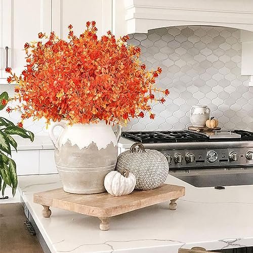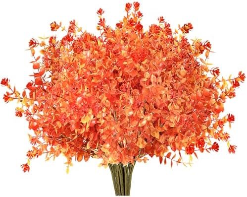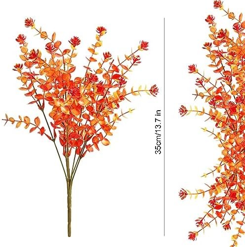 Artificial Fall Eucalyptus Plants,20 Bundle Fake Fall Boxwood Shrubs No Fade Faux Autumn Plants for Outdoor Yard Home Garden Weeding Door Decoration