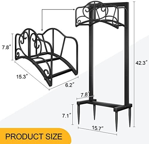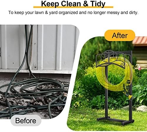 Aesthetics & Practical:The exterior of the hose holder is well designed and unique, like a work of art, and perfect for your garden and yard. In addition, there are five fixed points on the top of the pipe frame to ensure that the shelf is sufficiently firm, and the curved design is more conducive to the storage and use of the hose.