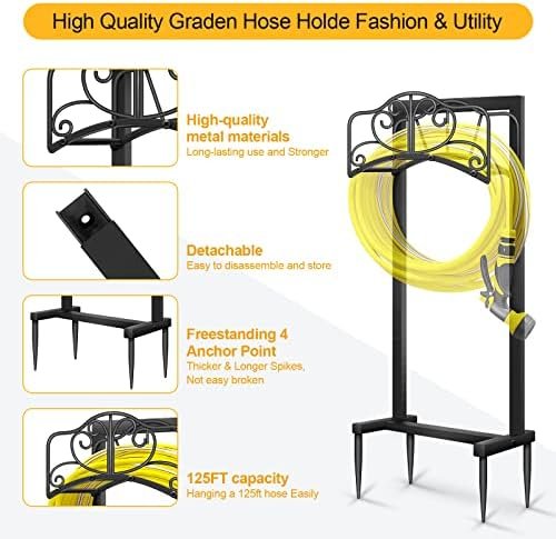 Sturdy & Durable: This garden hose holder is made of heavy-duty materials to ensure that it will hold the weight of the hose for a long time without deforming.The surface of the hose rack has been specially treated to ensure that it will last a long time and is not prone to rust.