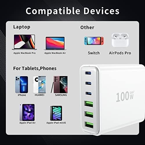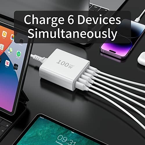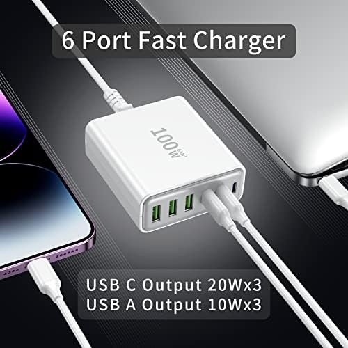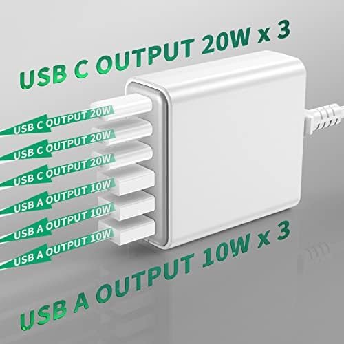【SIX-in-One】: With 3 USB-C Power Delivery port and 3 USB A . 20W x 3 USB C and 2x20W USB-C and 3 USB A 12W. you’re ready to charge Seven of your devices simultaneously. Extended power cord for convenience and portability Handy for home office and on-the-go charging.