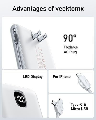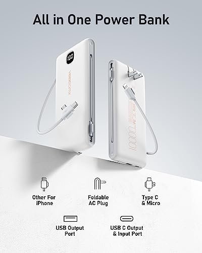 [Small Portable Charger For travel] This 5 in 1 power bank portable phone charger with wall plug is slim and lightweight.Your best travel charger for multiple devices.
