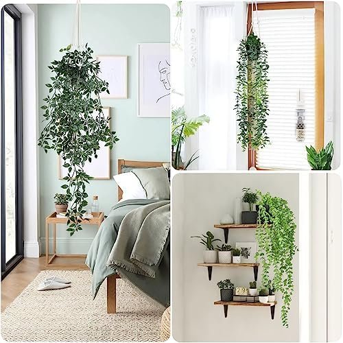 Durable Material : Made of high quality plastic, each leaf of our fake pothos plant has many stems and clear textures that make it looks realistic and vivid, also it will always maintain a bright fresh-looking green. Combined with plastic pot and hanging ropes, it is ideal for indoor environments and will withstand the test of time.